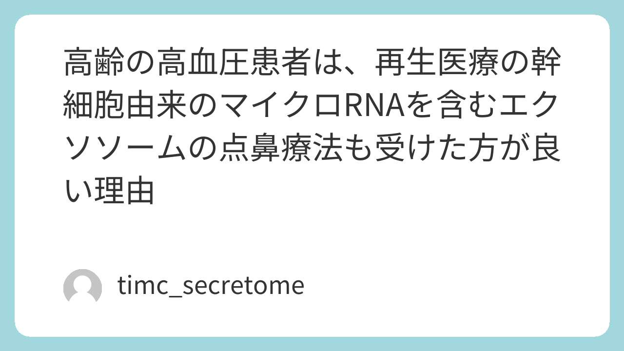 【高齢の高血圧患者が、降圧薬の内服だけでなく、再生医療の幹細胞由来のマイクロRNAを含むエクソソームの点鼻療法も受けた方が良い理由】