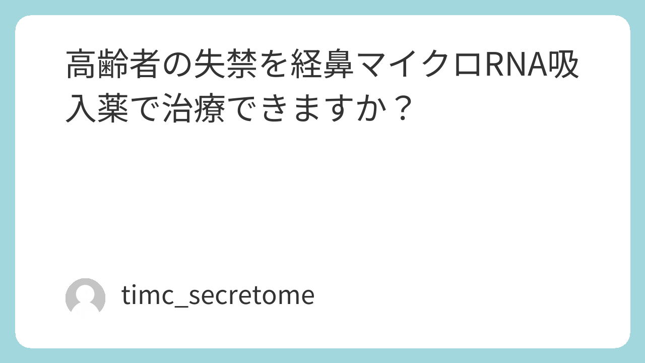 【高齢者の失禁を、経鼻マイクロRNA吸入薬で治療できますか?】