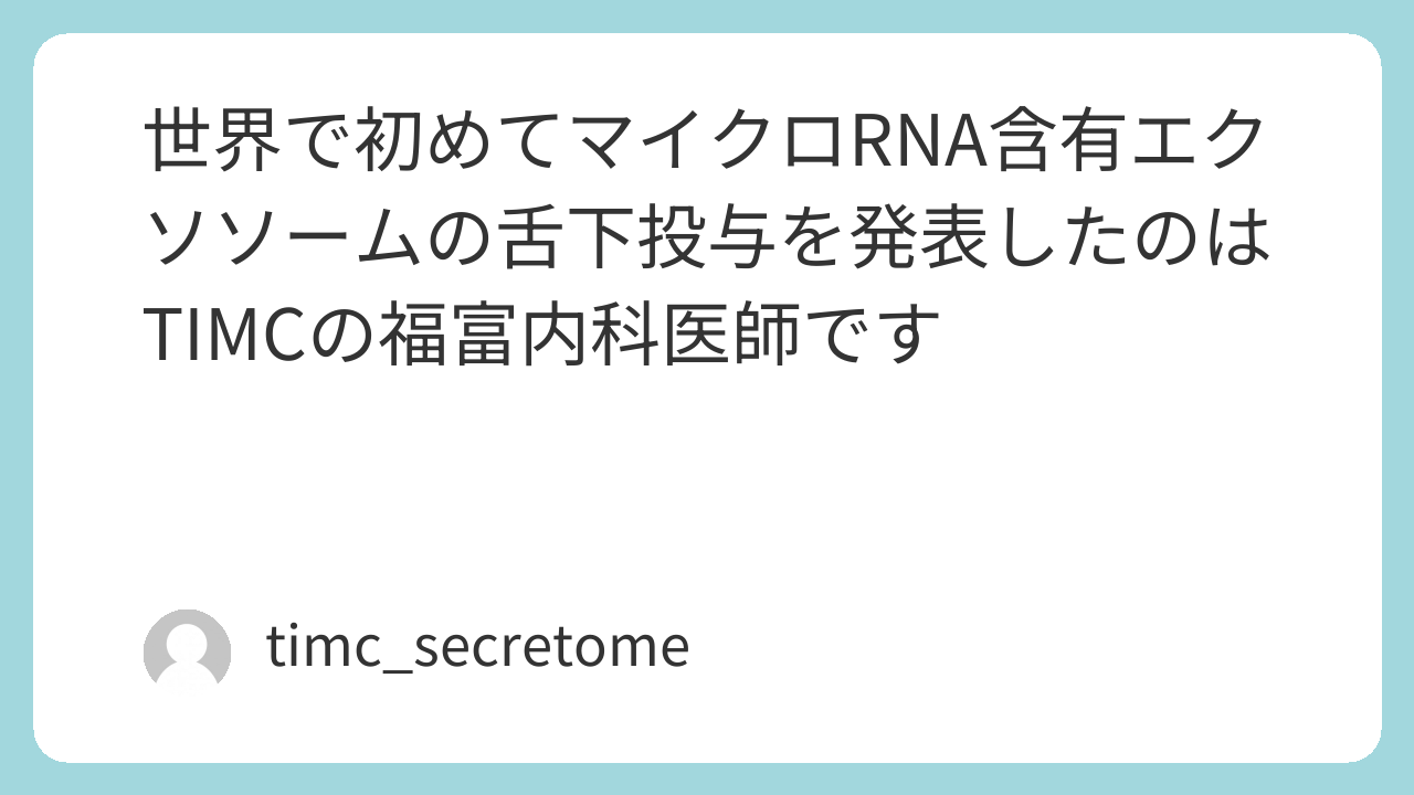 世界で初めてマイクロRNA含有エクソソームの舌下投与を発表したのはTIMCの福富内科医師です
