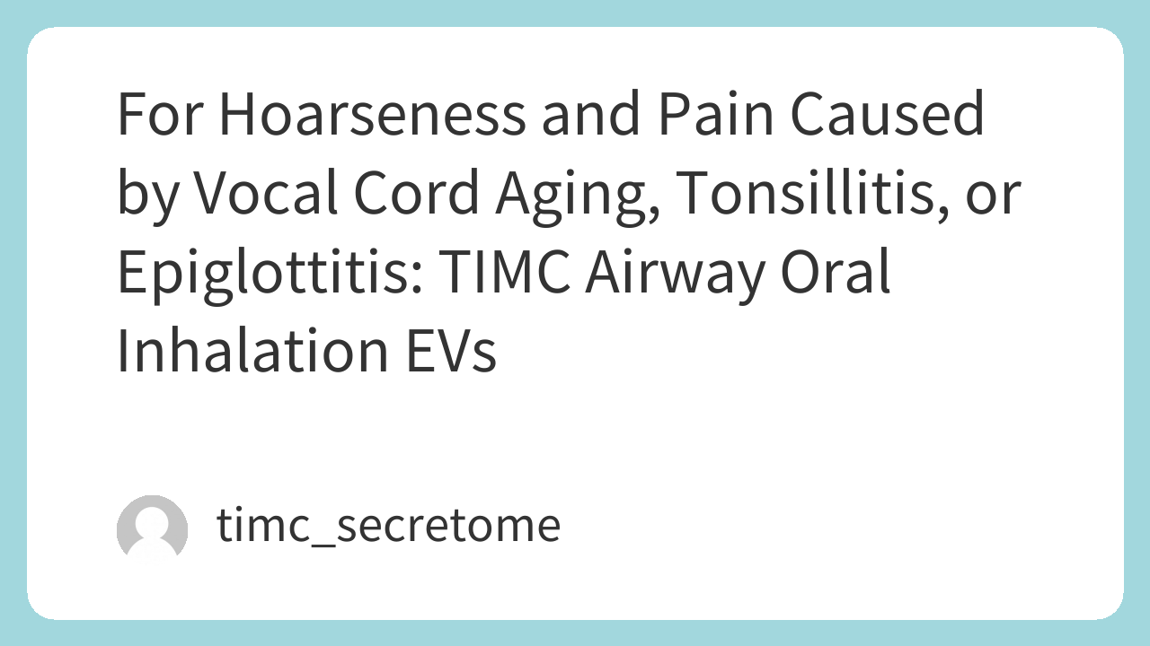For Hoarseness and Pain Caused by Vocal Cord Aging, Tonsillitis, or Epiglottitis: TIMC Airway Oral Inhalation EVs